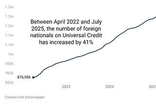 Visualisations for the increasing number of foreign nationals and asylum seekers claiming Universal Credit